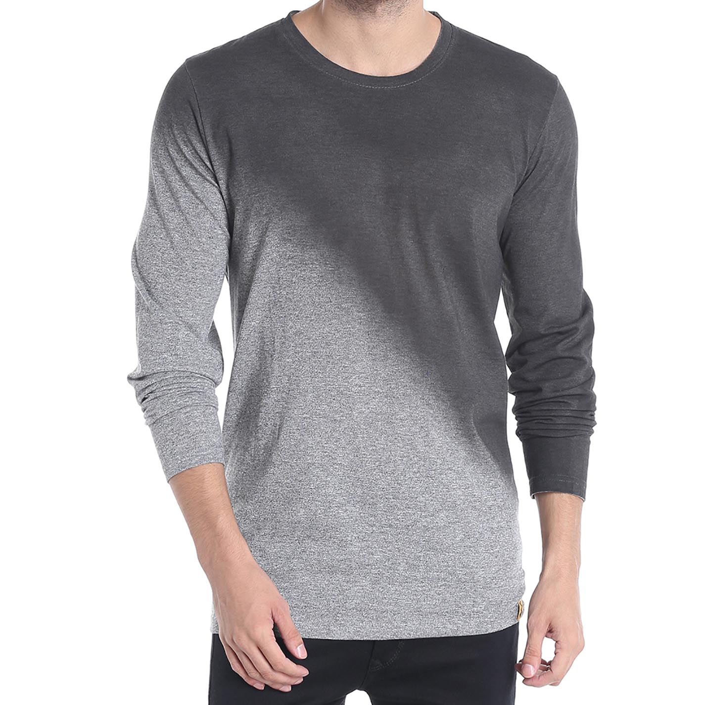 Grey colour blocked T-shirt, has a round neck, long sleeves cotton machine washable.